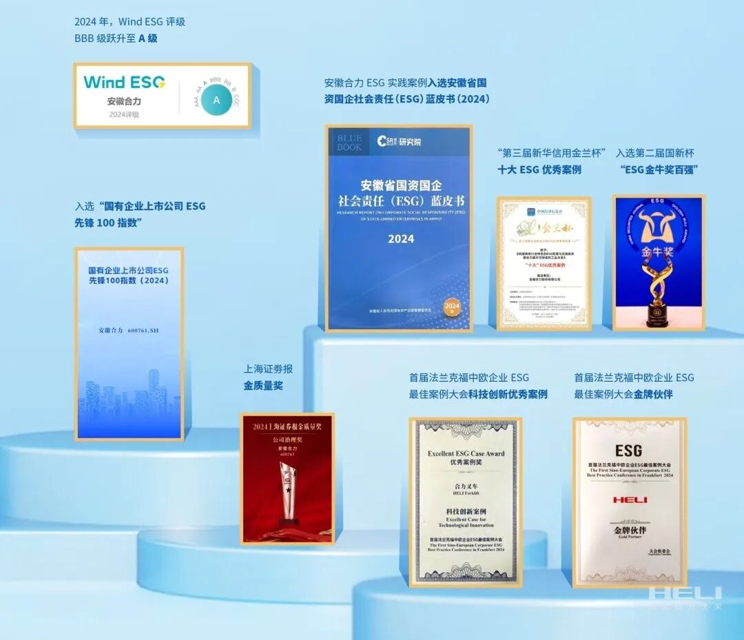 “十四五”期間,公司深入實施國企改革深化提升行動,全力推進企業治理體系和治理能力現代化,合力宇鋒成功入選國務院國資委“科改示范企業”,公司成為具有“雙科改”資質的省屬企業之一,被列為國務院國資委確定的安徽省唯一一家國企改革基層聯系點。深入開展對標世界一流價值創造行動和專業領軍示范企業創建工作,全面建設“產品卓越、品牌卓著、創新領先、治理現代”的世界一流企業,清單按時完成率均為100%,入選國務院國資委“創建世界一流專業領軍示范企業”,創建方案獲全國“A+”最高等次。積極響應聯合國可持續發展目標,于中國同行業率先發布可持續發展BOOST戰略,構建具有行業特色的ESG戰略管理與實踐體系,通過ISO37001反賄賂管理體系認證、CDP和EcoVadis國際資本評級,接續入選第十八屆中國上市公司價值評選“雙百強”,上榜“國有企業上市公司ESG·先鋒100指數(2024)”,“安徽合力”榮獲安徽上市公司高質量發展貢獻獎優秀等次。此外,公司持續深化“一改兩為”,創新“一體三維四融合”大監督體系,強化全面風險管理,加強合規文化建設,不斷以高效能治理推動公司穩健發展。